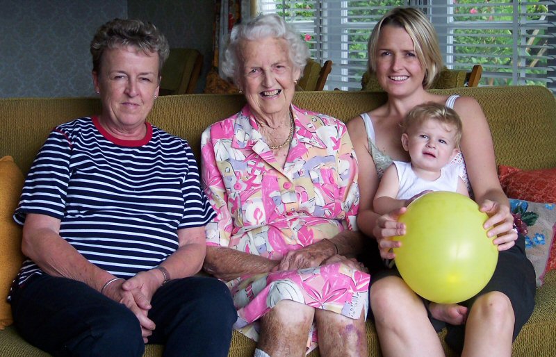 My family is spread over the world. Our Children: Sandra, is married to Ben Fankhauser and living in Geelong just out of Melbourne as a mother of Amy, Chad and Holly, My son Shane, is teaching guitar and playing in bands in Manchester England. He has a wee daughter, Sabine, with partner Nichola. He's done a music degree specialising in Jazz guitar. Glen, did an IT degree at Vic and now lives in New York. I have a sister Sue, who lives here in Napier, pictured here with my mother who lived out at Bayview on the old family orchard until she died on the 31st March 2006.